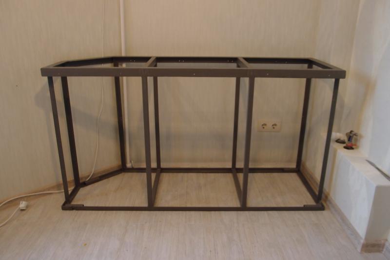 В день Х рыбы переехали в 180л, где аравана и развернуться толком то не могла. Тумбу полностью разобрал. Ужаснулся ещё раз. Принял решение усилить её посередине двумя вставками из профильной трубы. Отвез сварщику, предупредил о прямых углах. Сварщик Володя оказался молодец и сварил все на 5+, но сам каркас оказался кривой, в виде паралелограмма, пришлось подрезать нижние горизонтали и все исправлять, насколько возможно.