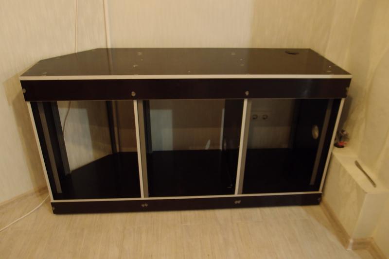 Аквариум появился в начале 2006 года, был склеен пятиугольной формы из-за формы угла, куда его планировал поместить. А так обычный полутонник - 150х50х60. Тумбу сделали из металлического каркаса, обшитого ДСП. Каркас был из уголка, что имело свое нехорошее продолжение. Через полгода аквариум был укомплектован Флювалом ФХ-5, подвел протоку. Еще через пару лет заменил фабричную крышку на самодельную из ПВХ. Жили астронотусы, манагуанцы, паку, аравана.