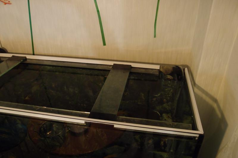 Для крышки сделал небольшой апгрейд, решив навсегда проблему подтекания из под неё. Купил пластиковый уголок в Эпицентре 10х20. вырезал куски их него по периметру и приклеил на монтажный клей к торцу крышки, который опирается на стекло. Потом все просушил и промазал стык, где клей силиконом, на всякий случай, и для защиты стыка от влаги и для защиты рыб от клея. )) Теперь из под крышки ничего не течет.