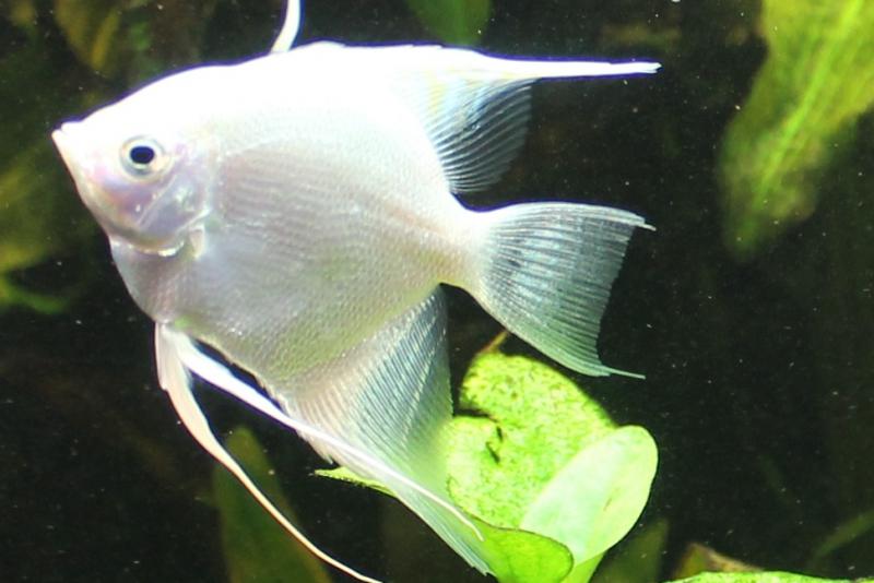 Скалярия белая платина (Pterophyllum scalare) 3 шт., пол неизвестен, возраст около 7 месяцев, размер по телу 5-6 см - по 40 грн. за хвост.