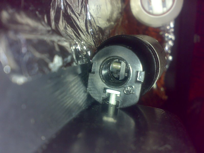 Чтобы спрятать провода пришлось вскрыть отсек с балластом. Не долго думая я отсоединил стойку от родной лампы и протянул через штатные "дырки" провод в отсек наружу...  .