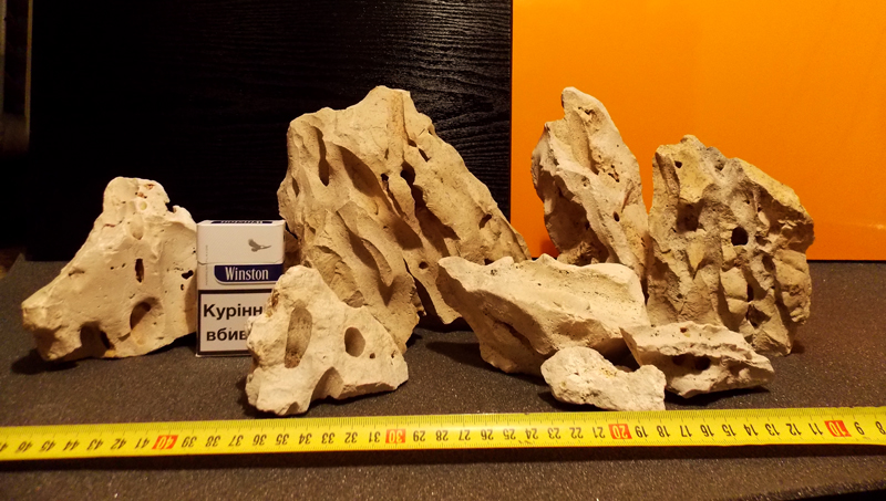 Уважаемые аквариумисты,понимаю что данная тема не всех заинтересует,но выхода нет!По своей неопытности (так как я новичок) приобрела для запуска новой аквы такие камушки,очень фактурные,похожие на ohko stone (которые мне нравятся,но цена кусается). Приперла их домой,отмыла,выварила,а уж потом решила проверить на уксус,а они реагируют!Не скажу что прям пузырят,скорее слегка шипят,но в травник класть их я не рискну.Может кому подойдут для цихлидника.Так вот,меняю на набор камней для травника или красивую корягу(моя аква д.70*ш.35*в45)Территориально нахожусь в Киеве, Печерский р-он. Пересылками заниматься не хотелось бы.Отдельный бонусный камень в композицию не влез,но может кто и втулит,камней всего 11шт. В породах сильно не разбираюсь,но мне подсказали что это вроде туф или известняк.