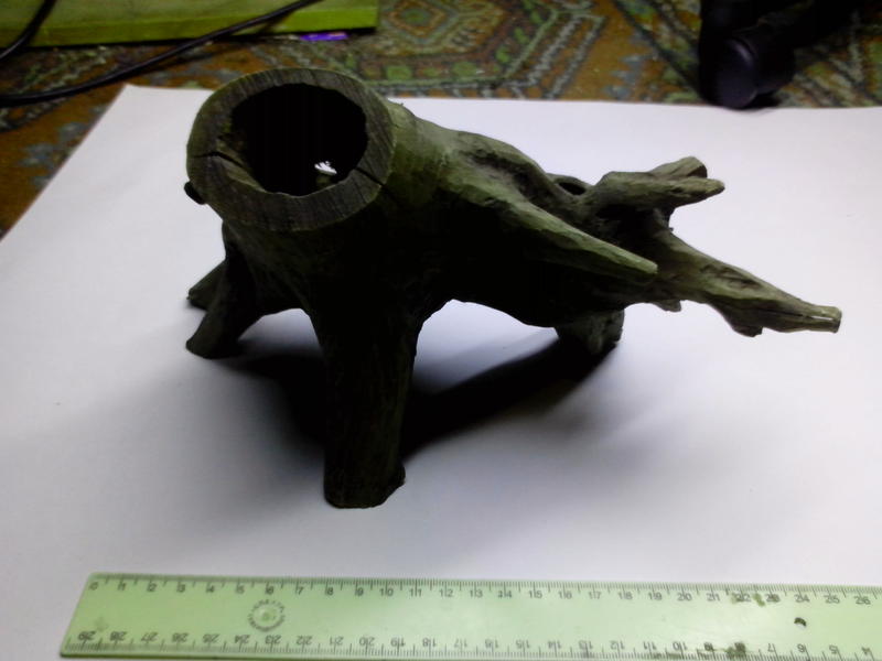 А вот и уникальная коряга на обмен. Дабы придать ей действительно изысканую и неповторимую форму пришлось на протяжении двух дней хорошенько поработать резцами, дрелью и пилой. Могу и продать если кому интересно, но предпочтительней все же обмен  Коряга уже выварена и находилась на протяжении 1,5 мес. в аквариуме на 40л. Так как давно находиться без воды высохла, но стоит её замочить на пару дней и она снова будет тонуть. В коряге имееться три глубоких отверстия в которые можно засыпать грунт и посадить растения, либо если корягу положить на бок в тонели смогут заплывать небольшие сомики или креветки. Так же есть одно сквозное отверстие достаточное что бы через него проплыла рыбка (2.5см диам.) Так же под акацией могут проплывать рыбки как под аркой. Высота арки 4-5см. Дерево: акация. Длина 29см, Шыр., 16 Выс. 14.