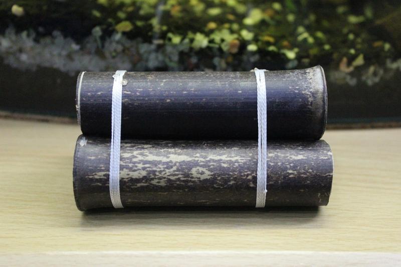 Домики были выварены с добавлением иона серебра.Бамбук ничем не покрашен - тоесть абсолютно безвреден для креветок.У самого таких 4,очень нравиться креветкам - да и мне самому.К домику можно примотать кусочек мха и он станет ещё красивее,а можно и папоротник.  Бамбуковые домики тонут сразу - не нужно вымачивать и варить их,они полностью выварены 3 раза.