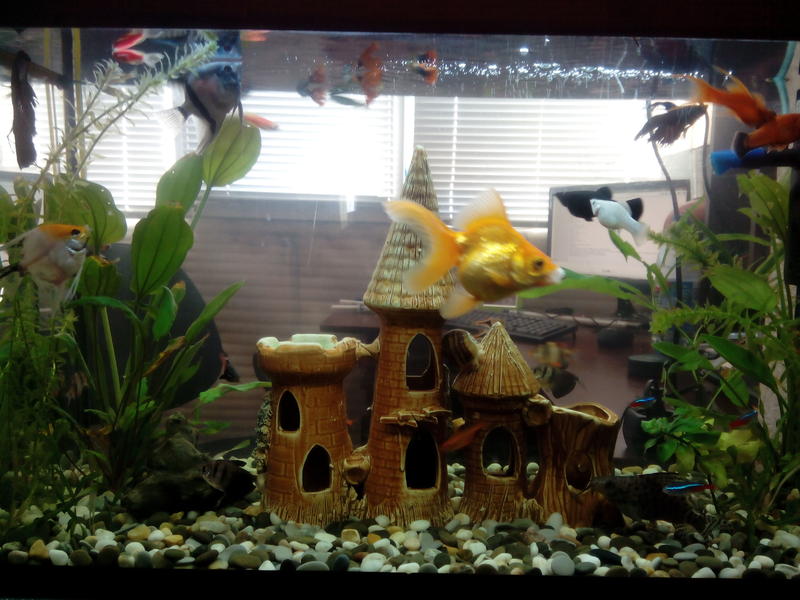 На данный момент уже понимаю, что перенаселение, но как все правильно сделать не знаю... Также заметил, что мраморная самка гурами всех гоняет, а сомики перевертыши устраивают разборки за территорию.