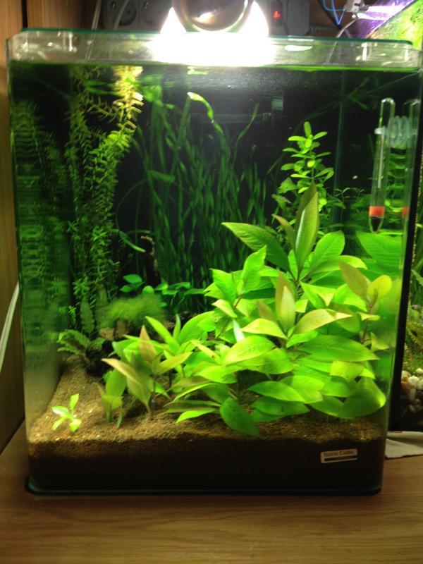 Как всегда все было не так просто как казалось, залил воду прилепил лампу, засыпал не пойми какой грунт ну и естественно втыкнув пару кустиков напускал кучу рыбок.
