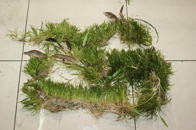 Коврик Эхинодоруса тенелиуса и вросшие в него криптокорины.