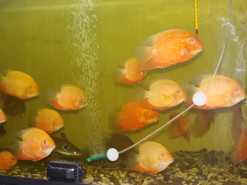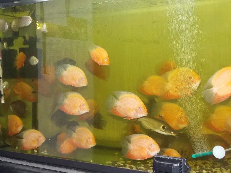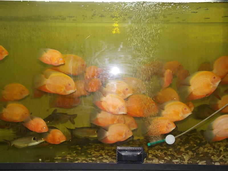 Оце сиджу собі у думаю, мабуть, треба трохи попродавать северумів "червона перлина". Хоч і гарні, але забагато. Крім них, є ще "червоноплечі" і "голд". Також є трохи сколіозних, "дискові" називаються. Є зовсім дорослі, є підлітки. Є і дрібнота, 2-3 см. Дрібноту не фотографував, сіре та біле, дивитись ні на що. Відбірні, самі-самі!, коштують 250 грн./шт. Ціна на плідників 400 гривень за пару, окремо на великих 100-150 гривень, залежно від розміру та забарвлення. Дрібнота - 3-5 грн. Є ще метиніси великі, дорослі, але дуже верткі, і фото неякісні. Ціна на них 80-100 грн. Додані світлини, на мій погляд, дають достатнє уявлення про рибу, що пропонується для продажу. Якщо хочете придбати - телефонуйте 066-172-71-92, Анатолій, або пишіть. Поспілкуємося і дійдемо до згоди. Писати можете на будь-якій мові, але застерігаю, що прочитати та відповісти на звернення зможу лише на українській або російській мовах. Розраховуватися можете в будь-яких грошах, але у вище вказаному єквіваленті. Відправлю будь-куди і будь-як, як це можливо зробити із Запоріжжя, за рахунок покупця. Риба така, що як побачите, то будете в захваті, не пожалкуєте ! І жити ця риба у Вас буде довго, років 10-15, бо ще молода і тільки входить в силу. І лінії, від яких вона отримана, дуже добрі. Загалом, дивіться і замовляйте, товар якісний.