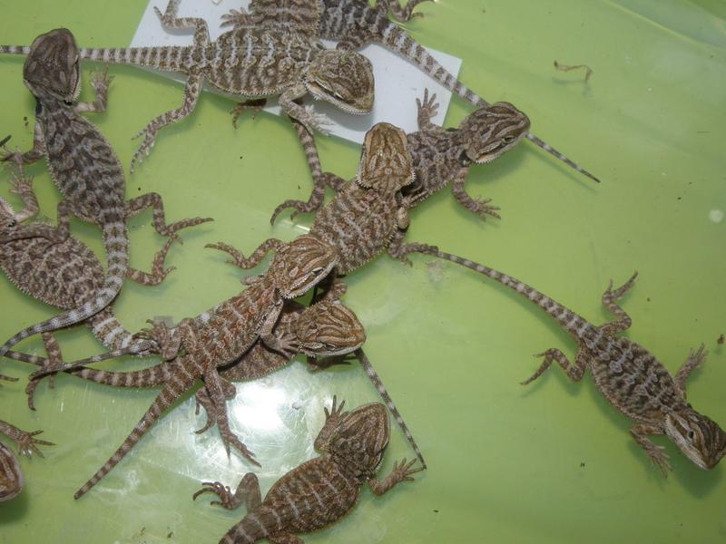 Бородатые агамы, подростки красной и жёлтой морфы.