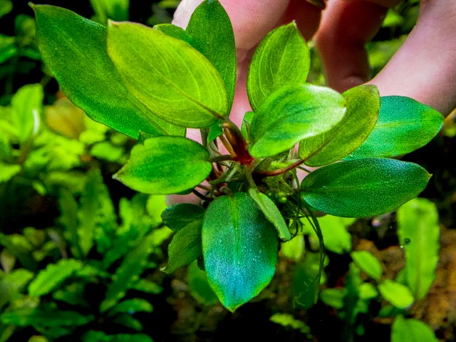 Bucephalandra sp.Claudia, с бронзовым отливом.