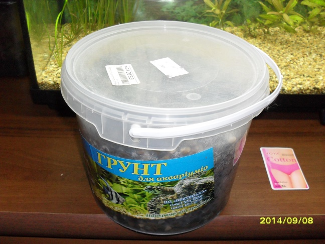 - Грунт в аквасе, светлый, фракция 3-5 мм, около 9 литров