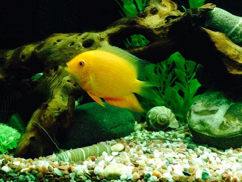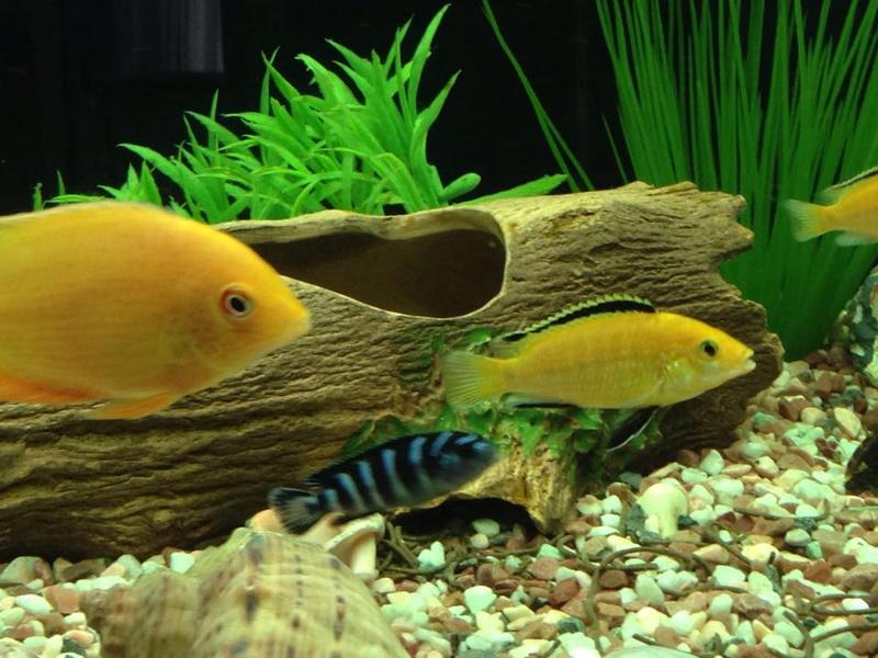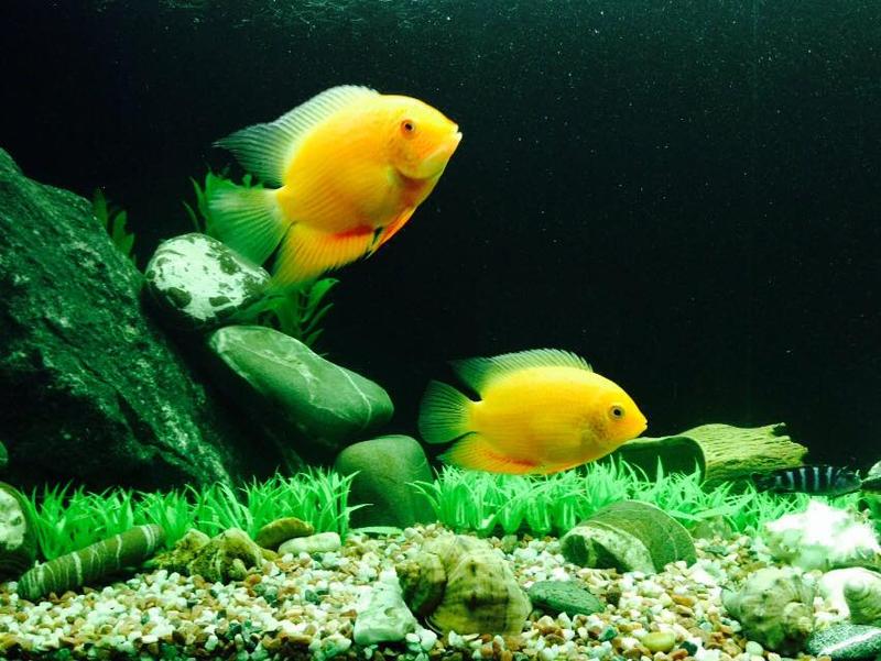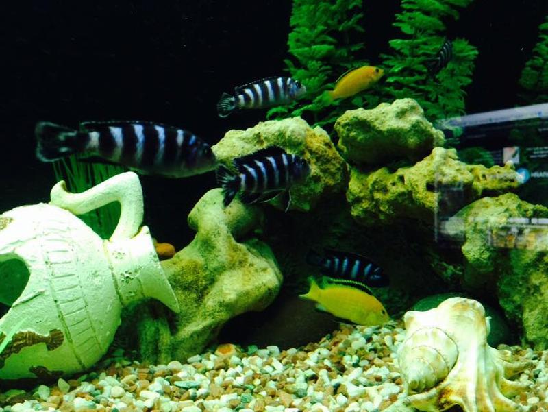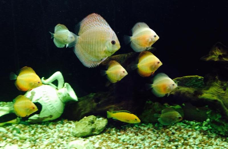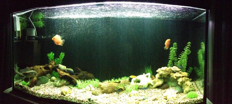 До этого в августе 2014 в аквариуме изначально поселились 6 демосони, 4 еллоу, северумы пара, Плекостомус 1, Hypostomus - 1.