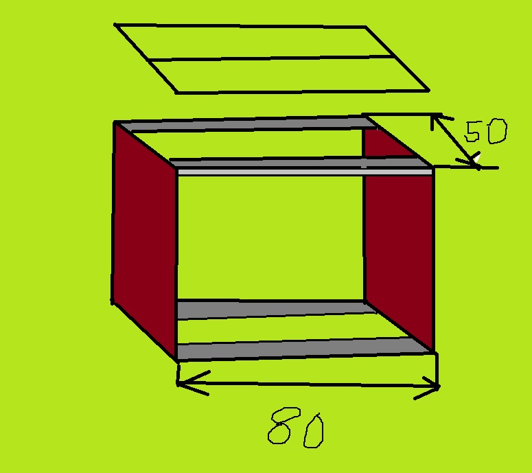 Є комод 80х50 посередині 3 шухляди, бічні стінки і верх ДСП 18мм, хочу підсилити верх комоду зваривши із профільної труби квадрат по всій площоні тобто 80х50 і посередині дати ще 1 перемичку і уже на той каркас прикріпити верх комоду. Комод з правої сторони закріплений до стіни, позаду немае можливості замінити ДВП на ДСП шухляди майже впритик(. Аква під замовлення 80х45х60(в) скло 8мм, дно 10мм, так от питання чи витримае комод таку нагрузку? і чи хватить каркас з труби 30х30 ?