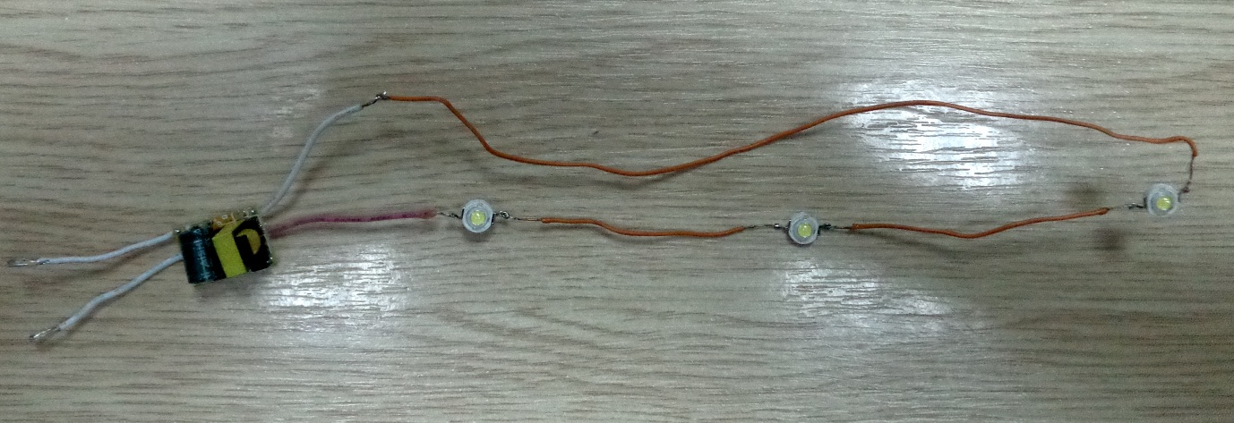 После просмотра на ютуб как держать паяльник в руке) приступил к пробной сборке... после не длительного времени (15-25 мин) получилось что-то похожее на заготовку освещения)