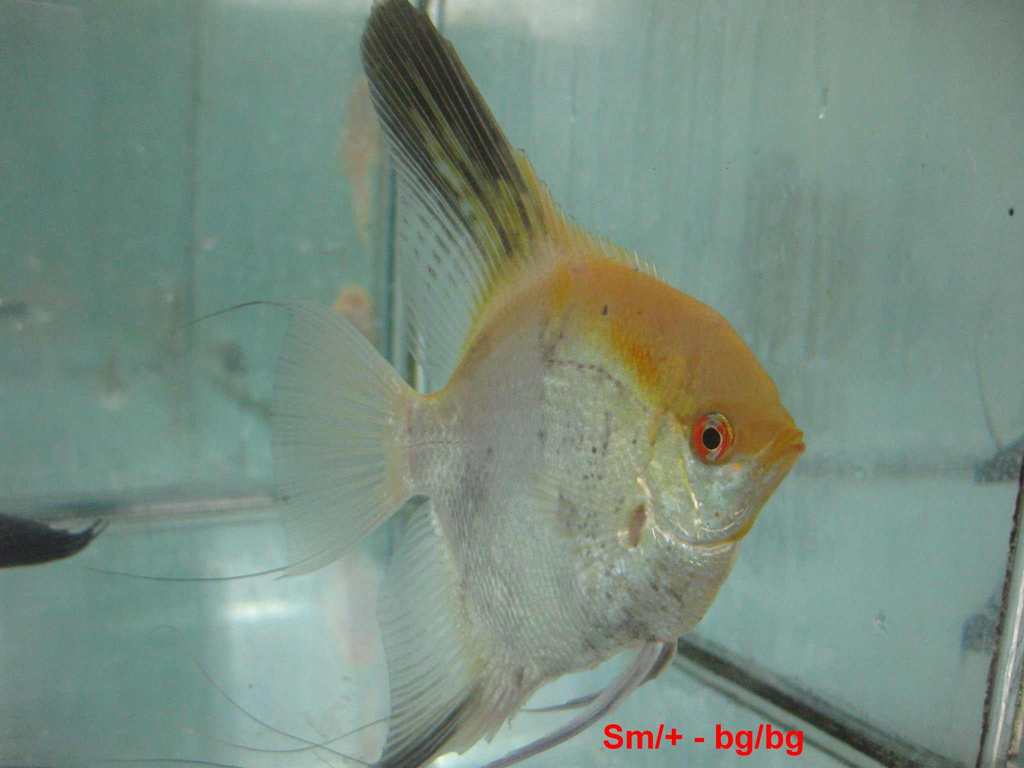 Первая из этих двух скалярий, классическая дикая форма, у которой только новый ген в двойной дозе (bg/bg).