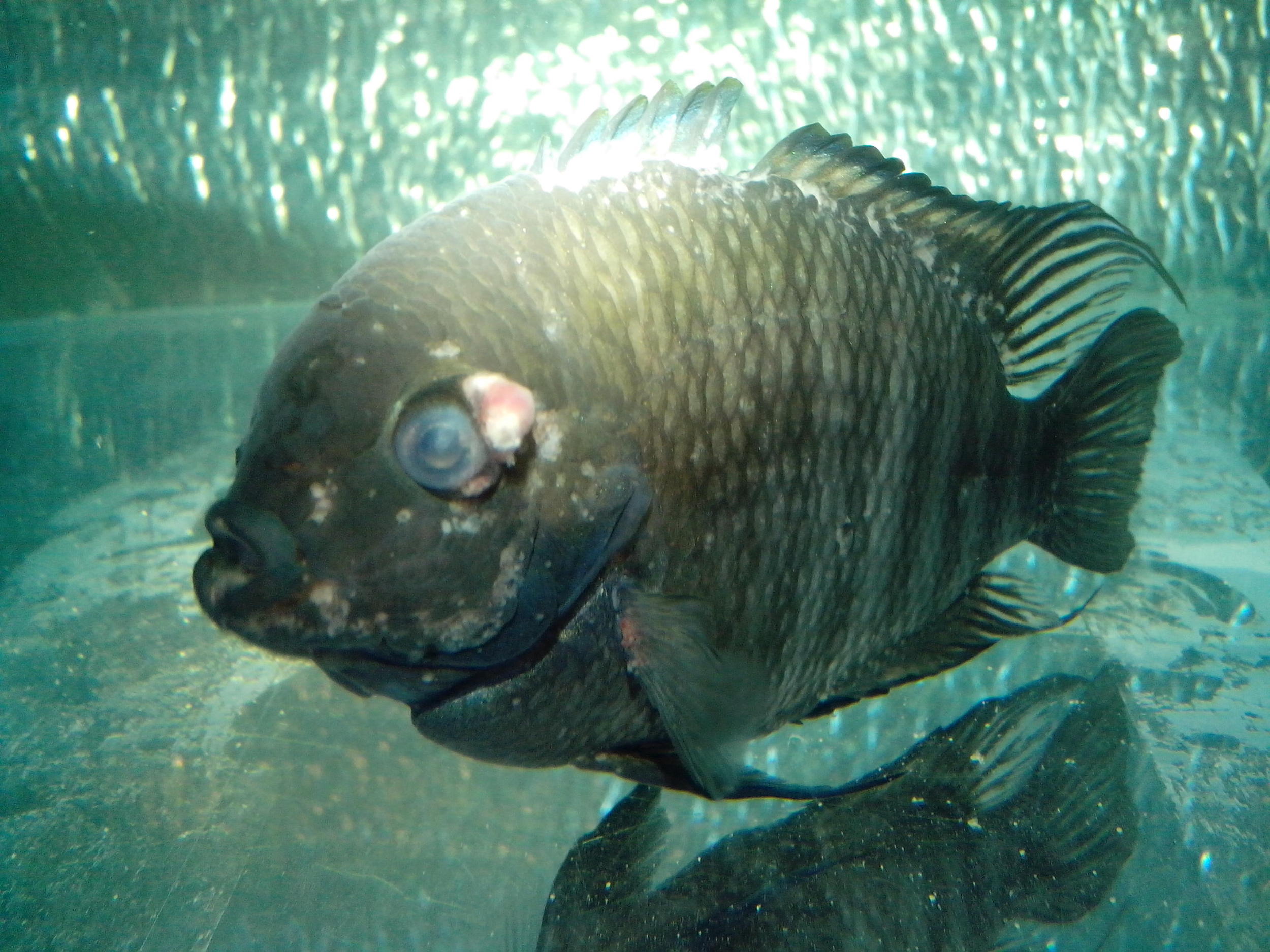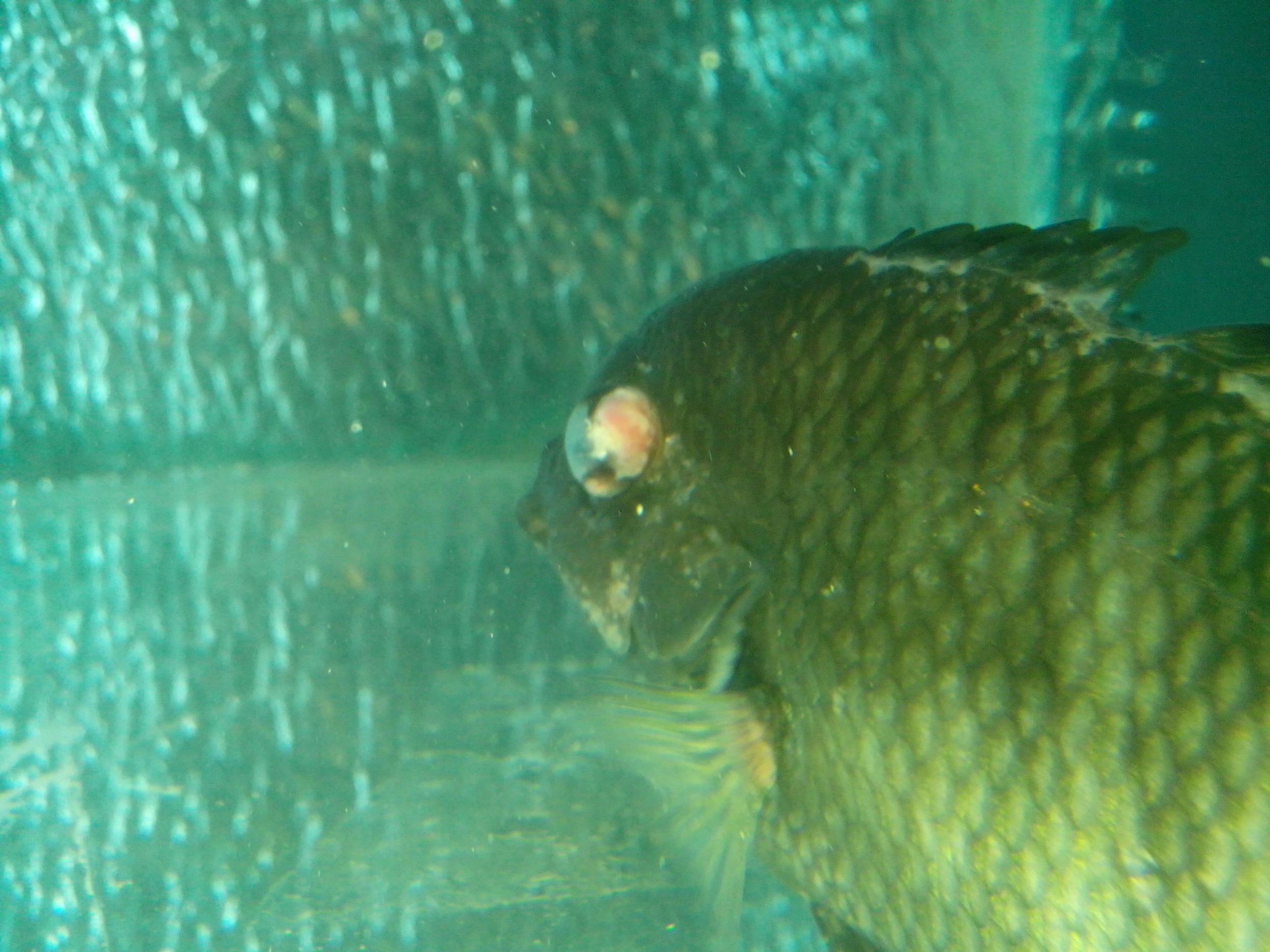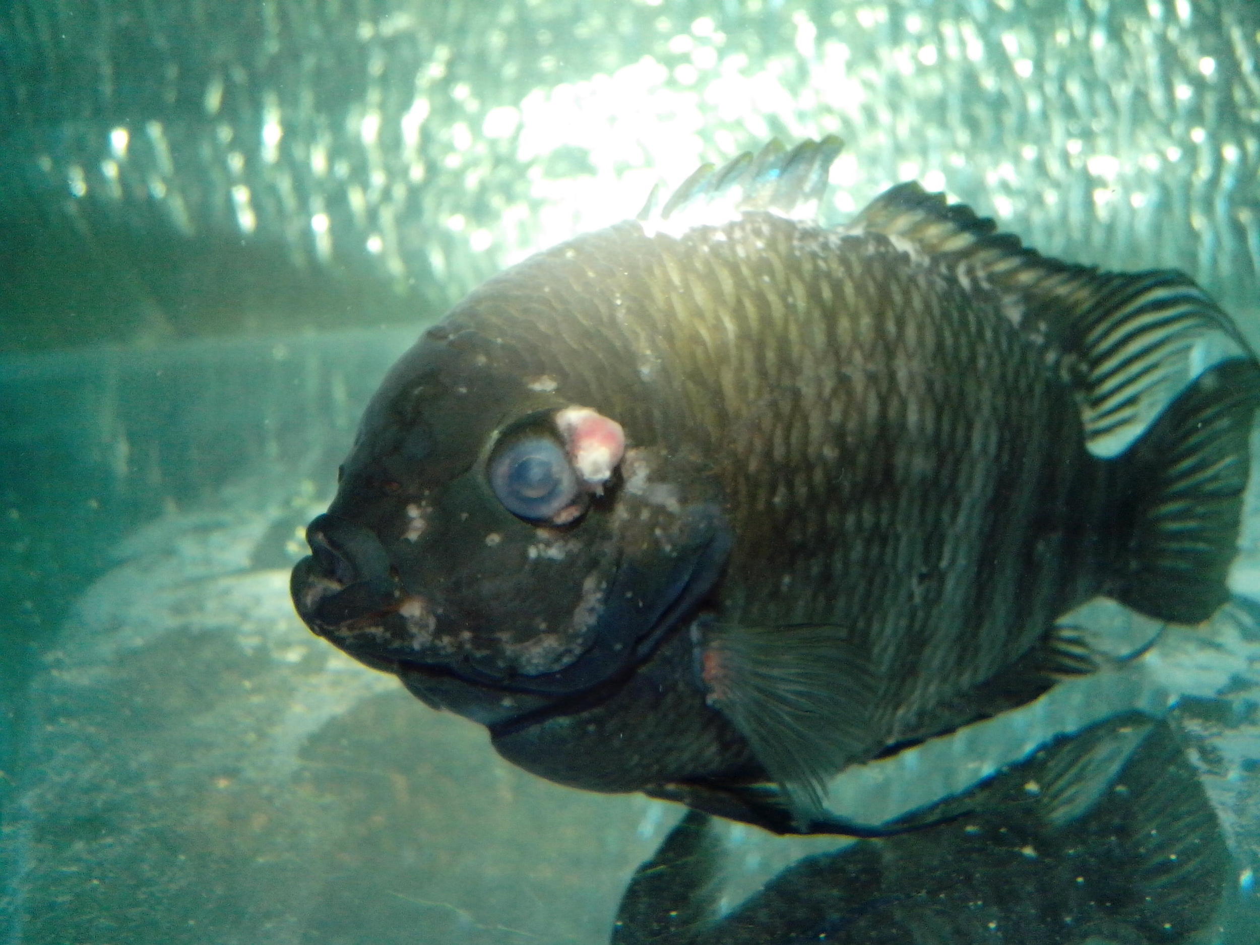 Седжик вначале выпучился глаз потом начала расти язва и чтото выпучилось глаз втал на место но глаз ослеп болеет в течении двух недель лечил ципрофлоксацином и нестатином первый курс неделя потом вьорой курс изониазидом выделений никаких нет кал нормальный но рыбка не ест сейчас плавает у поверхности перед этим была дырочная болезнь месяца два назад нелечил само все заросло а да еще у основания плавника брюшного с той стороны где язвенный глаз какието красные бугорки очень жду помощи в нете рыл такого не нашол
