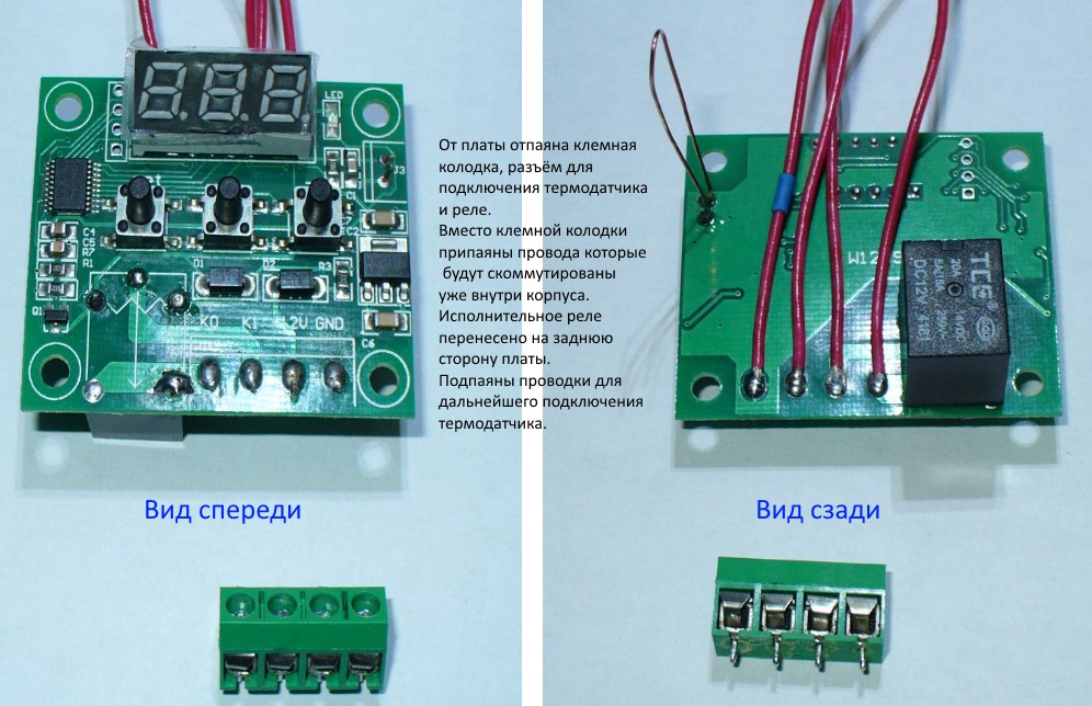 Плата терморегулятора перед установкой в корпусную панель была немного доработана под конкретную задачу: