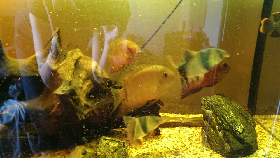 + немногочисленное, но население (боции-клоуны и боции-неклоуны -точное количество подсчету не поддается — до 10, вероятно), сомики (3 звезды и 1 альбиносный король), северумы помаранчевые (3) и еще один живчик вида акара бирюзовая — самый прожорливый, не вырос, но крутецкий рыбас)