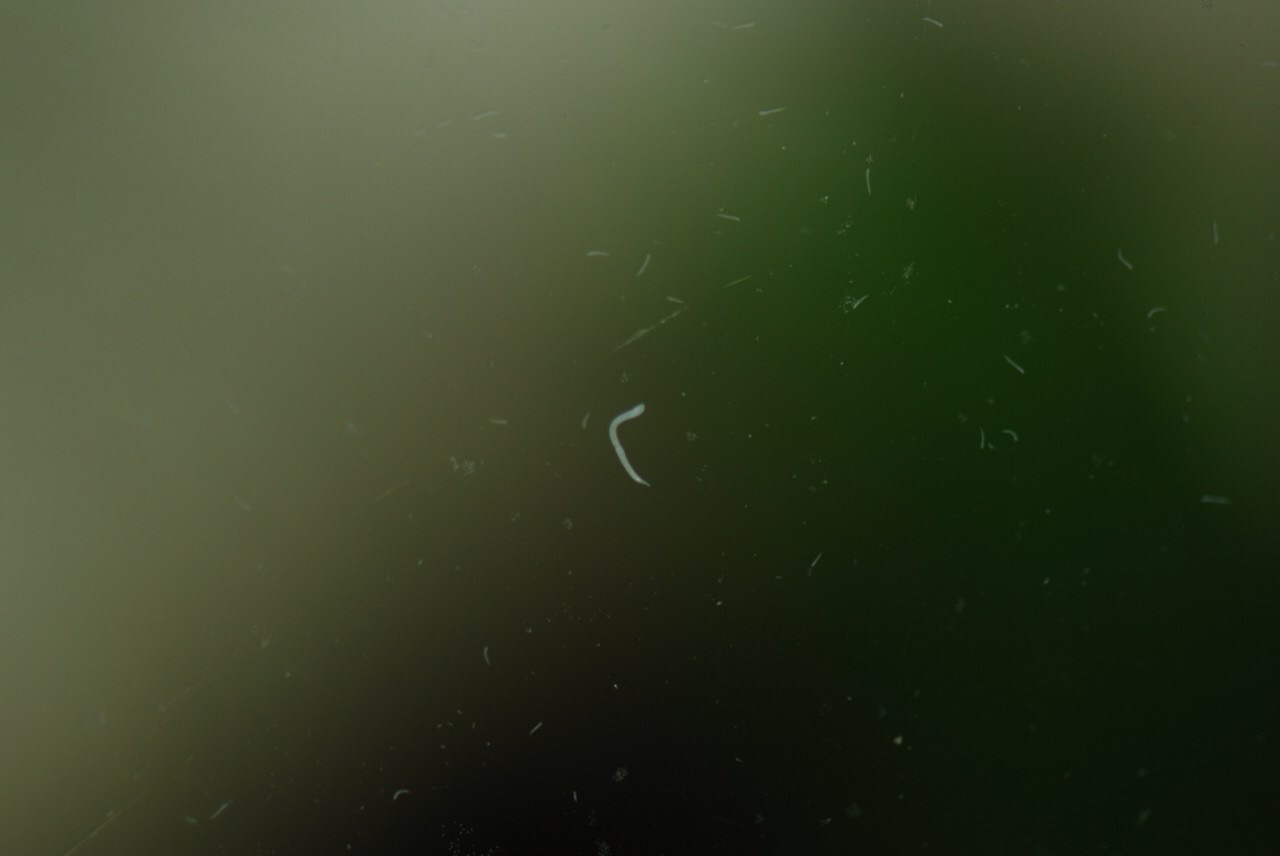 Добрый день! Используем наш старый аквариум, который использовался лет 8 назад. Домики те же. Новый грунт и оборудование. Неделю назад залили воду и включили фильтр. 5 дней назад долили 40% воды из уже оформленного аквариума (добрые люди поделились водой и содержимым фильтра). Вода стала прозрачной буквально через пару часов. 3 дня назад добавили грунт и водоросли. Вчера вечером запустили анциструсов. Вот как раз при последнем рассмотрели на стекле сотни маленьких червей, как ворсинки. Основная масса их до 1 мм, но уверенно передвигающаяся. Если смотреть в общем, то как буд-то статичны, но присмотревшись видно, что ползут. Отдельные особи примерно 4-6 мм. Они на каждой стенке аквариума. Около 10-15 штук мелких на 1 см.