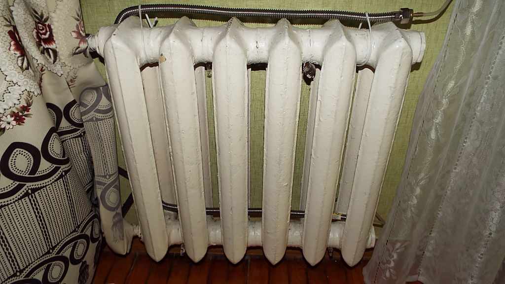 На батарею положена сложенная вдвое двух метровая гофрированная нержавеющая труба (используется для подключения газа - цена 100 гривен). С двух сторон трубы одеты переходники под ёршики. Благодаря очень медленному протоку воды, она успевает нагреваться до 22 градусов при расходе порядка 3-4 капель в секунду (может, ошибся с каплями, вода быстро капают, ещё немного и потечёт струйкой).