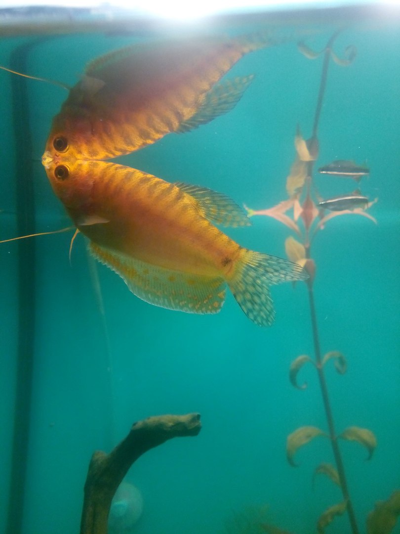 у нас живут 4 гурами , 2 медовые и 2 мраморные, вот только не знаем кто девочка кто мальчик)) помогите определить