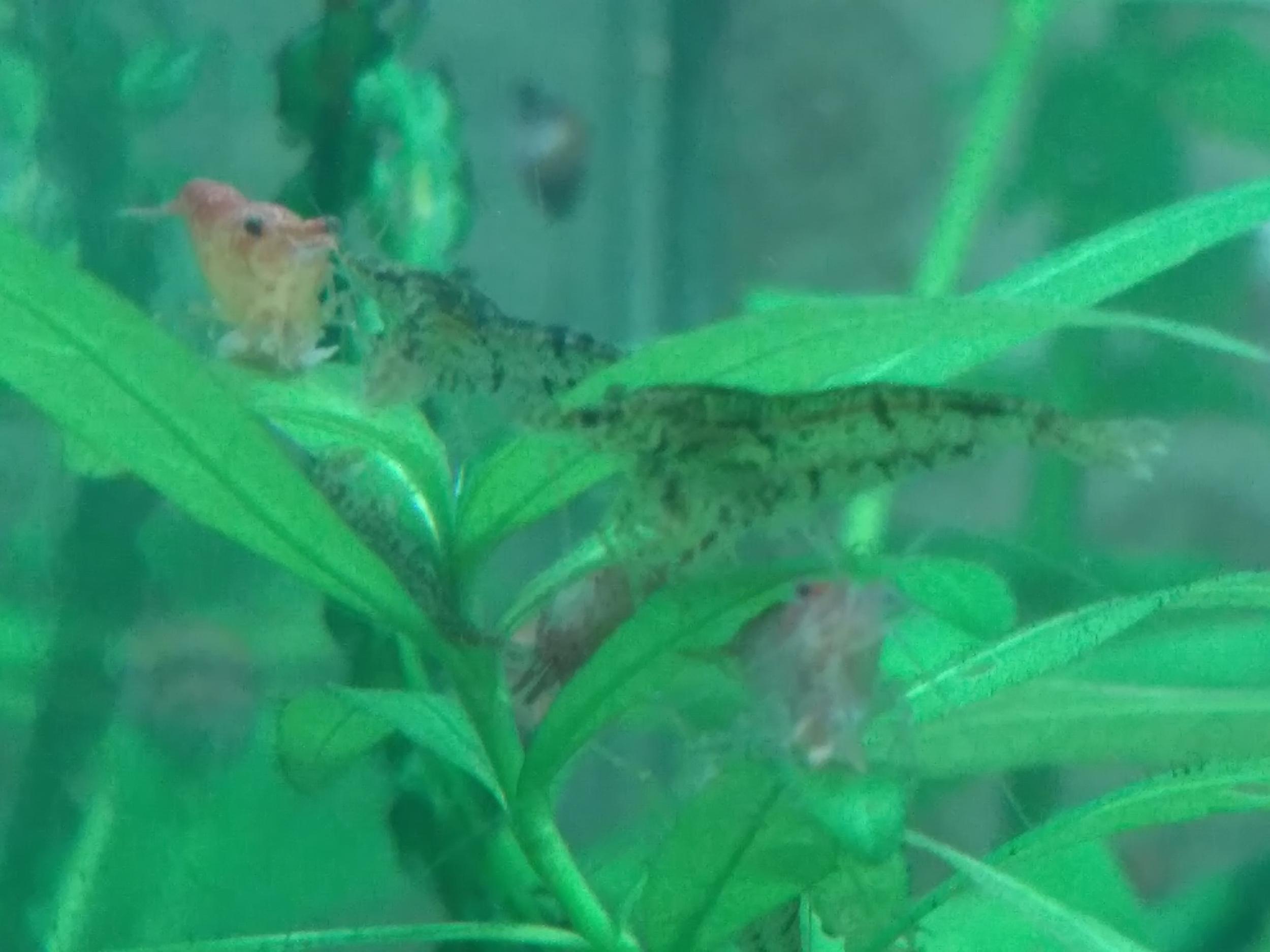Phylia,с креветкой которая справа на фото согласен-очень уж похожа на тигрика(на самого обычного тигра)А вы сами при покупке их отлавливали??может вам не того тигра подложили??))-как вариант.Ну или же популяция тигров содержалась без оновления крови и начали попросту мутировать в замкнутомареале.Ну как не крути а по фото -дикарь полнейший, прям неандерталец))))