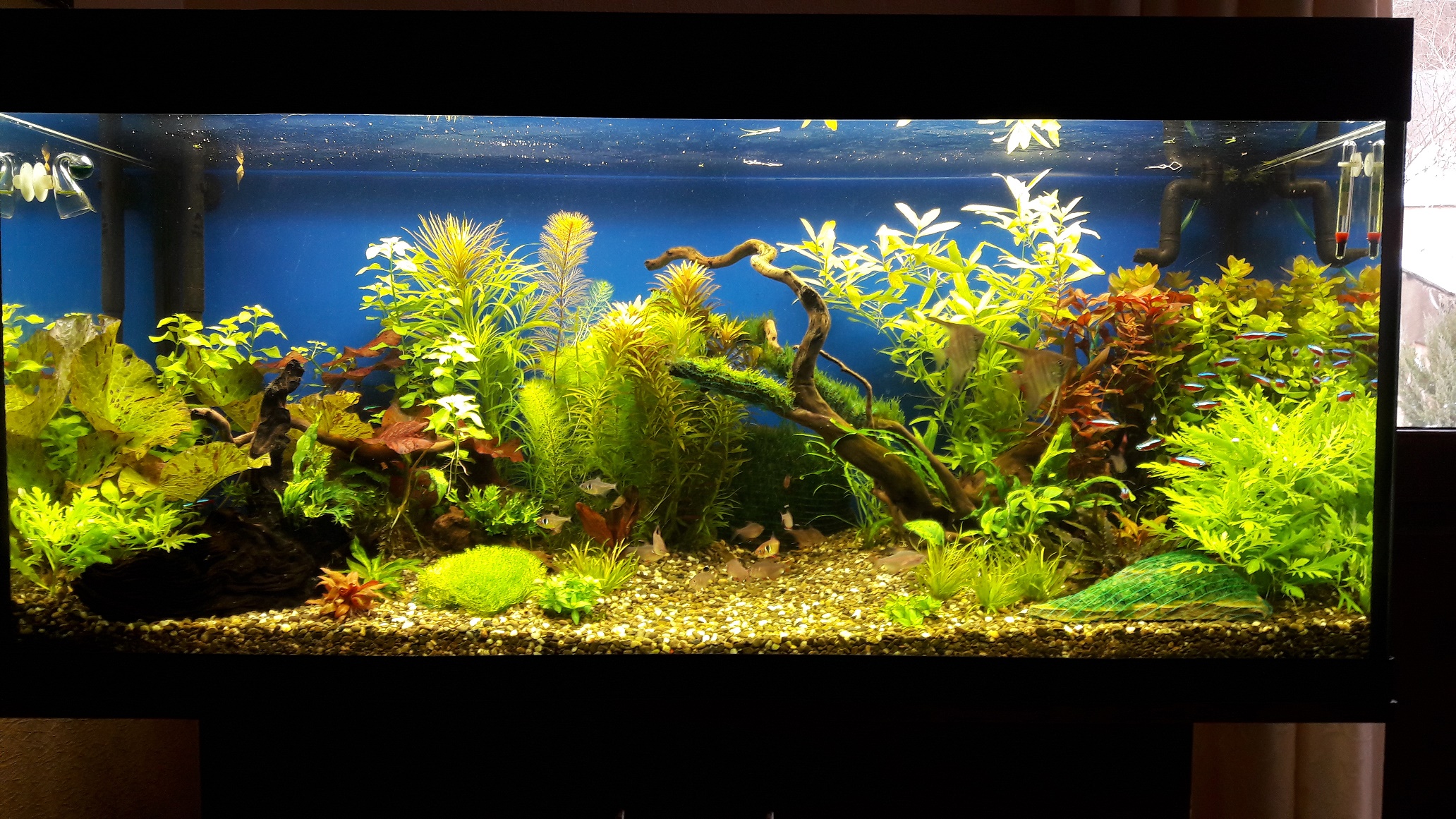 Ph 6,8, GH9, KH7. Підміна води - раз в два тижні 1/3. Мішаю воду зі скважени(яка проходить фільтрацію) з осмосом.