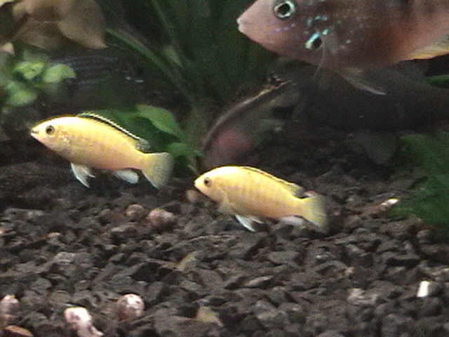 Я бы с радостью их разделил, но в силу отсутствия другого аквариума и полезной площади, пока этого сделать не могу. Хотя на удивление ни кто ни кого не трогает, даже хромисы нерестятся и ни к кому не придираются ( разве только не пускают на свою територию). Такое впечатление, что создалась некая иерархия в банке, каждый знает свое место и не претендует на соседское.