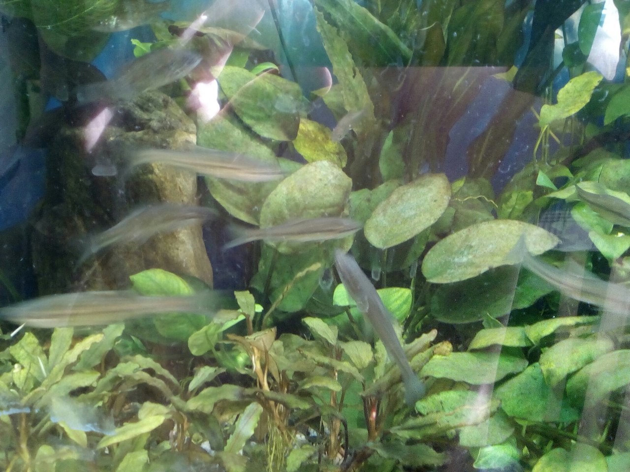 Кстати банка 280 л. тоже плотно засажена анубиасами и свет ледпрожекторный. По периметру стёкол наблюдается коричневатый налет особенно у дна , легко счищается.