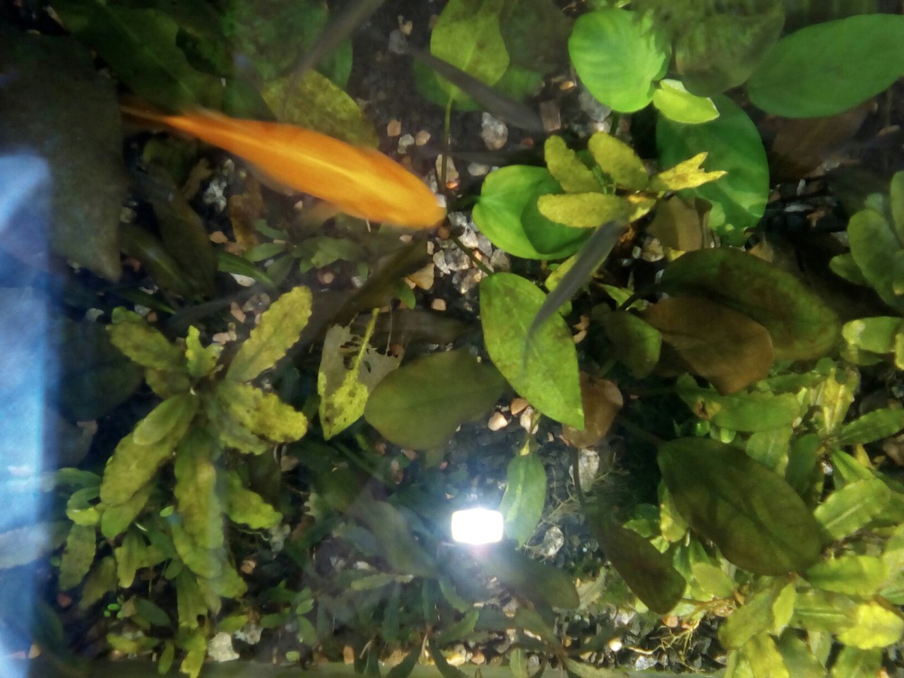 Но насколько я знаю они прут от нехватка света, а тут как то наоборот стало... Бороды почти нет. Пару точек всего насчитал на весь аквас.
