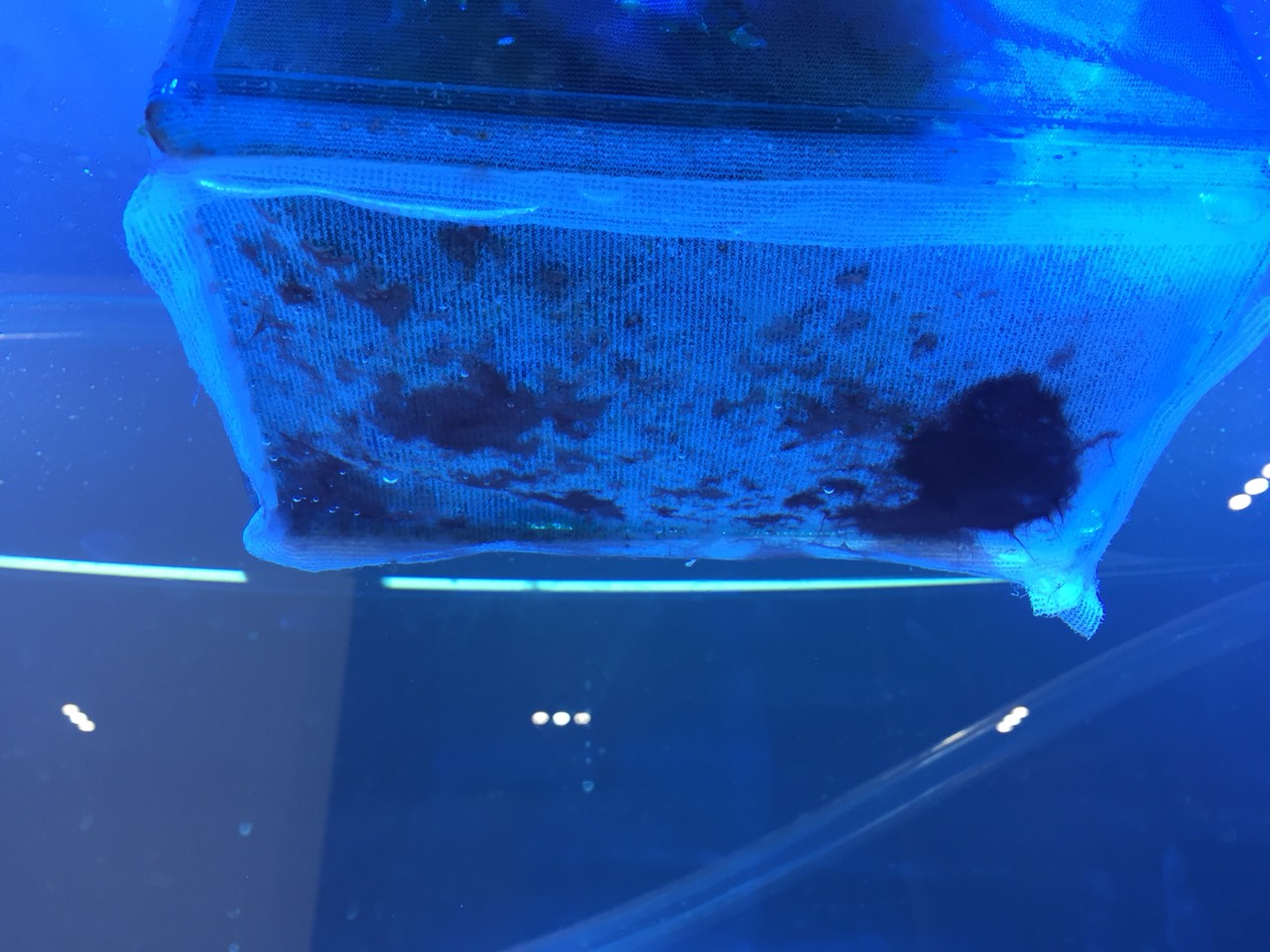 на второй день после внесения в акву растений, сетчатый отсадничек, песок и некоторые камни покрылись фиолетовыми пятнами, наверное диатомовые водоросли поперли, система оживает