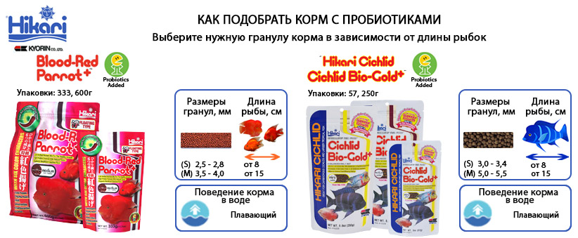Выбор корма Hikari в зависимости от семейства рыб