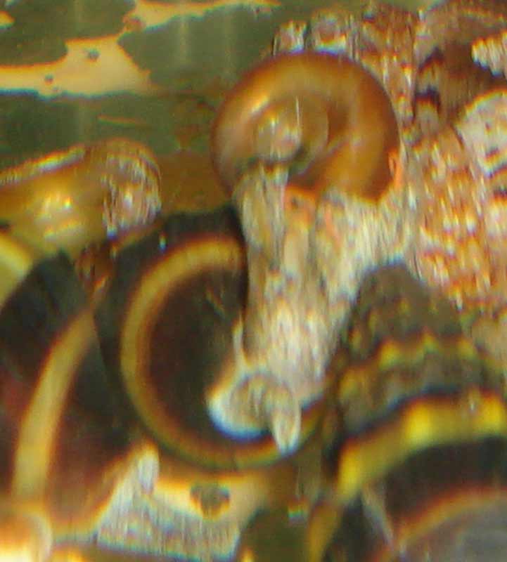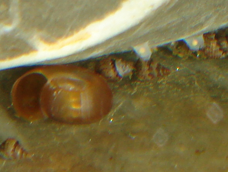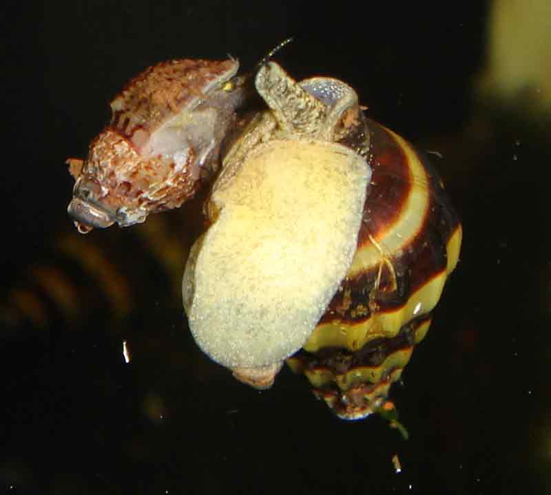 Удалось рассмотреть, как злодеи питаются  . У них выдвигается рот в виде хоботка (но не тот, который всегда торчит), как у меланий, только тоньше. Им они и выедают меланию из панциря. Увидел это так как Хелена поглощала маленькую меланию, сидя на стекле.