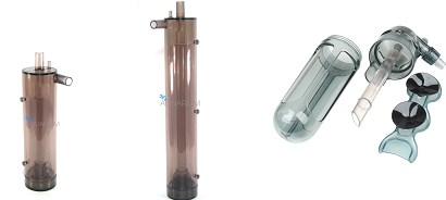Это устройства в которых установлена такая же мелкопористая коричневая керамика, как и во внутренних атомайзерах, но большей площади. Такие устройства редко выполняются в виде комбинированных – все отдано для увеличения КПД. Проточные атомайзеры работают под достаточно высоким давлением. Поэтому они предназначены для работы с баллонными системами подачи СО2 или промышленными образцами установок СО2 на соде и лимонной кислоте, так как далеко не все самодельные системы на соде и лимонной кислоте могут создать необходимое для работы атомайзеров давление. Для наибольшей эффективности производители выпускают комбинированные модели миксера и атомайзера – турбо-реакторы. В них устанавливаются крыльчатки определенной формы и довольно большие керамические цилиндры. Эффективность таких устройств, при небольших размерах, на высоком уровне.
