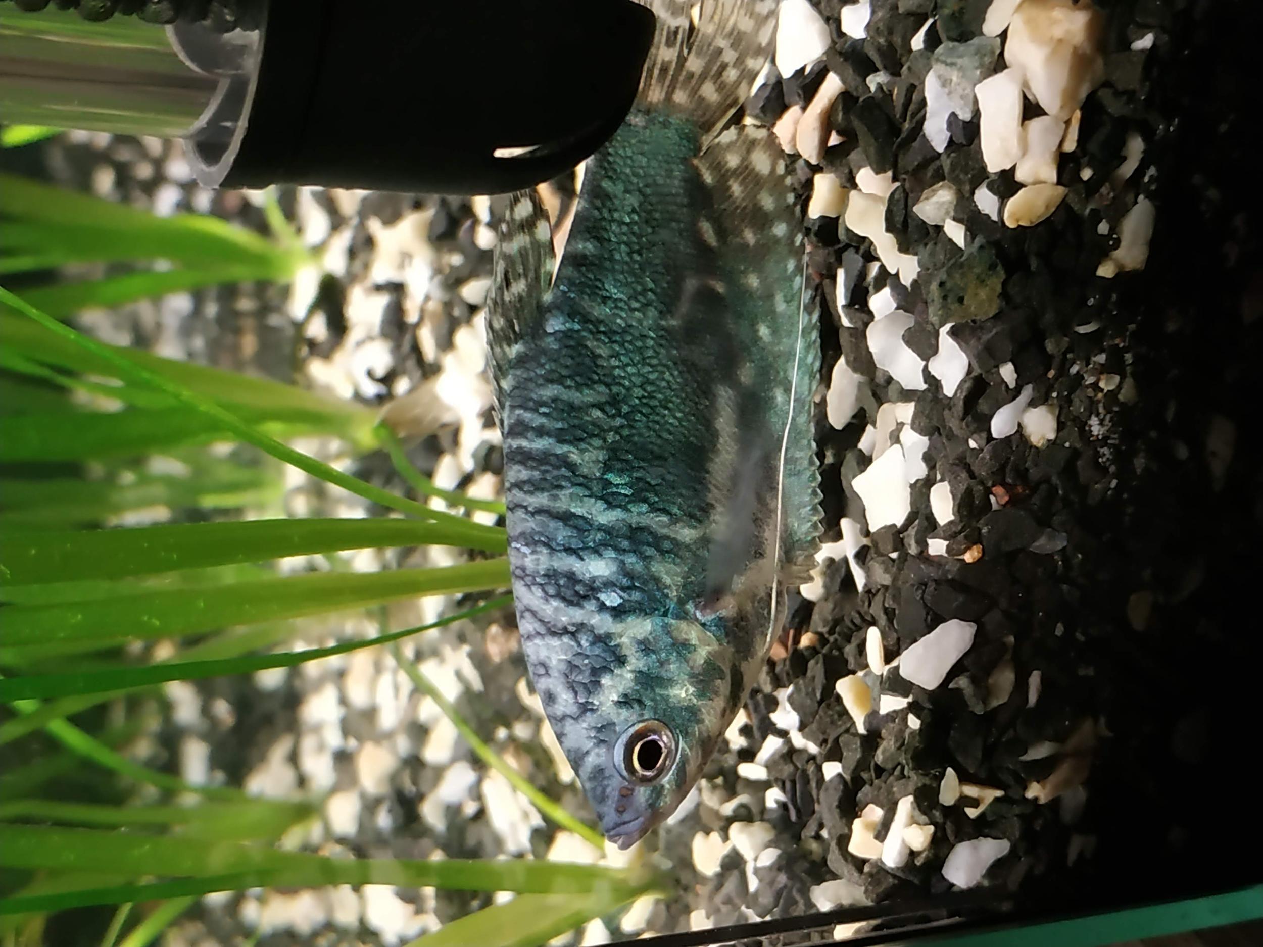 Помогите определить пол гурами. Прочитал и посмотрел все что только можно и ни как не могу определится. У меня их 4 шт. 2 пересадил в 30л. банку, думал нерест будет ( самец пузирял сверху в общей банке и отгонял всех с поверхности) но после пересадки тот самец начал клевать сильно самку(наверное).