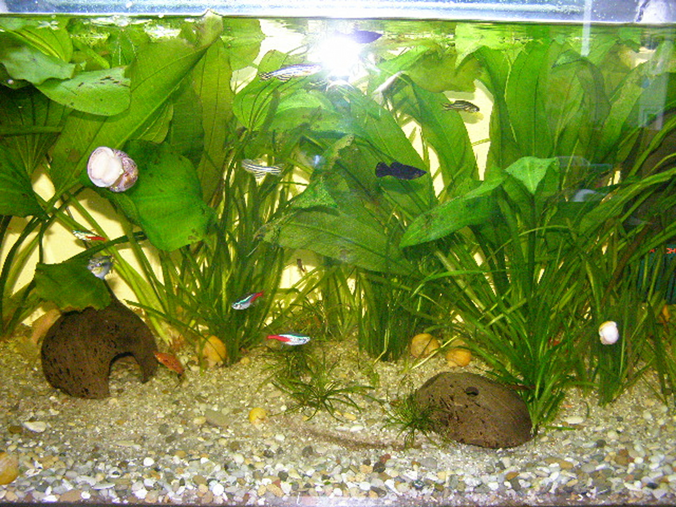 Когда переехал в Германию и здесь завёл. В начале всё было нормально: растения зарастали и цвели некоторые, рыбки и моллюски нерестились,
