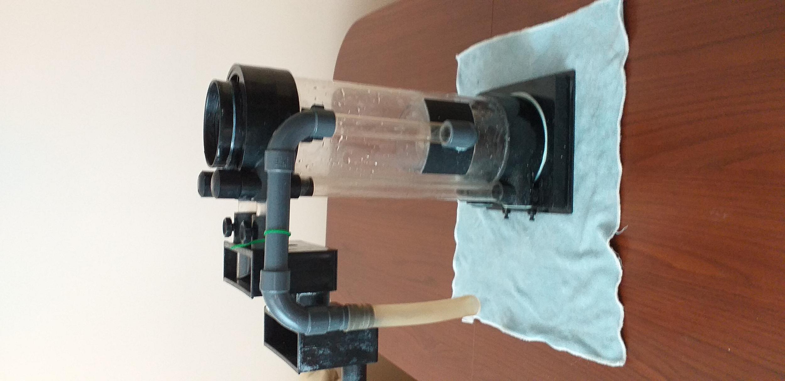 Объем 480 куб.см. Вертикальный, прямоугольной формы-от пола до потолка квартиры. Размер стекла: ширина 63х63х63х63 см., высота 130 см. толщина стекла 10 мм. Снизу и сверху открывающиеся тумбы. Дополнительно есть прожектор, помпа прокачивающая Aquamedic Ocean Runner OR 2500, насос для Aquamedic Ocean Runner PH 2500, флотатор.