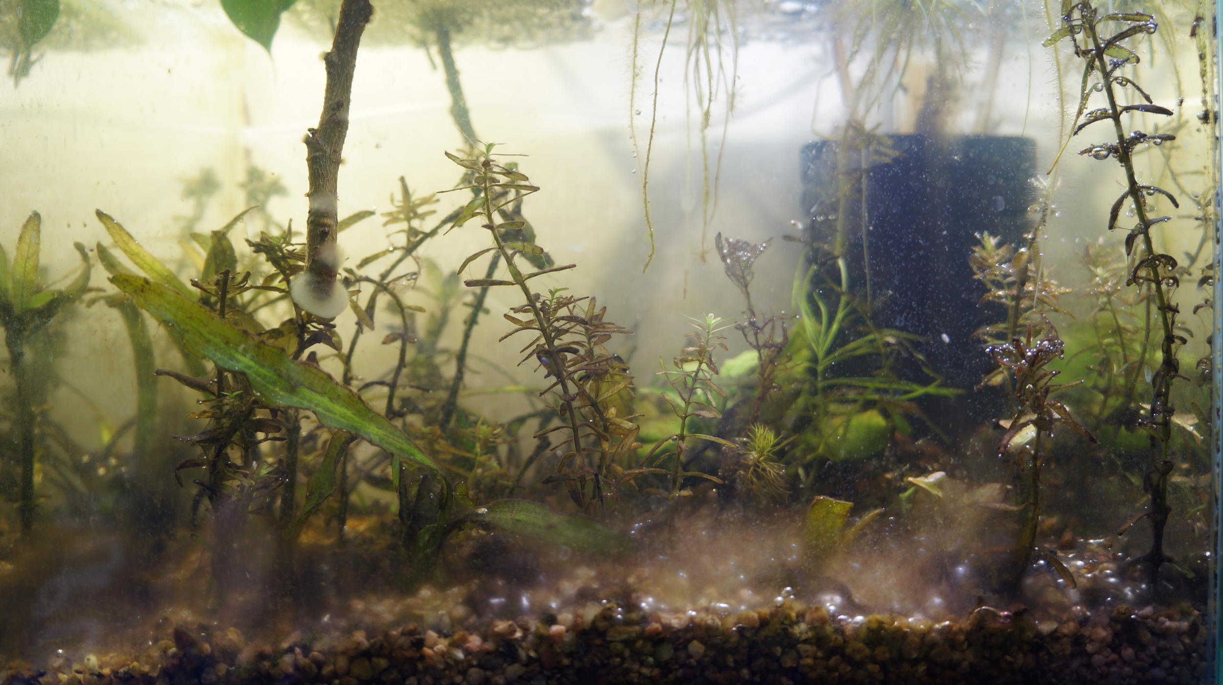 Получается, что нужно либо контролировать колличество живности, держа его мизерным, по отношению к массе воды и растений. Либо нужны тихие фильтры, не мешающие ночью спать.