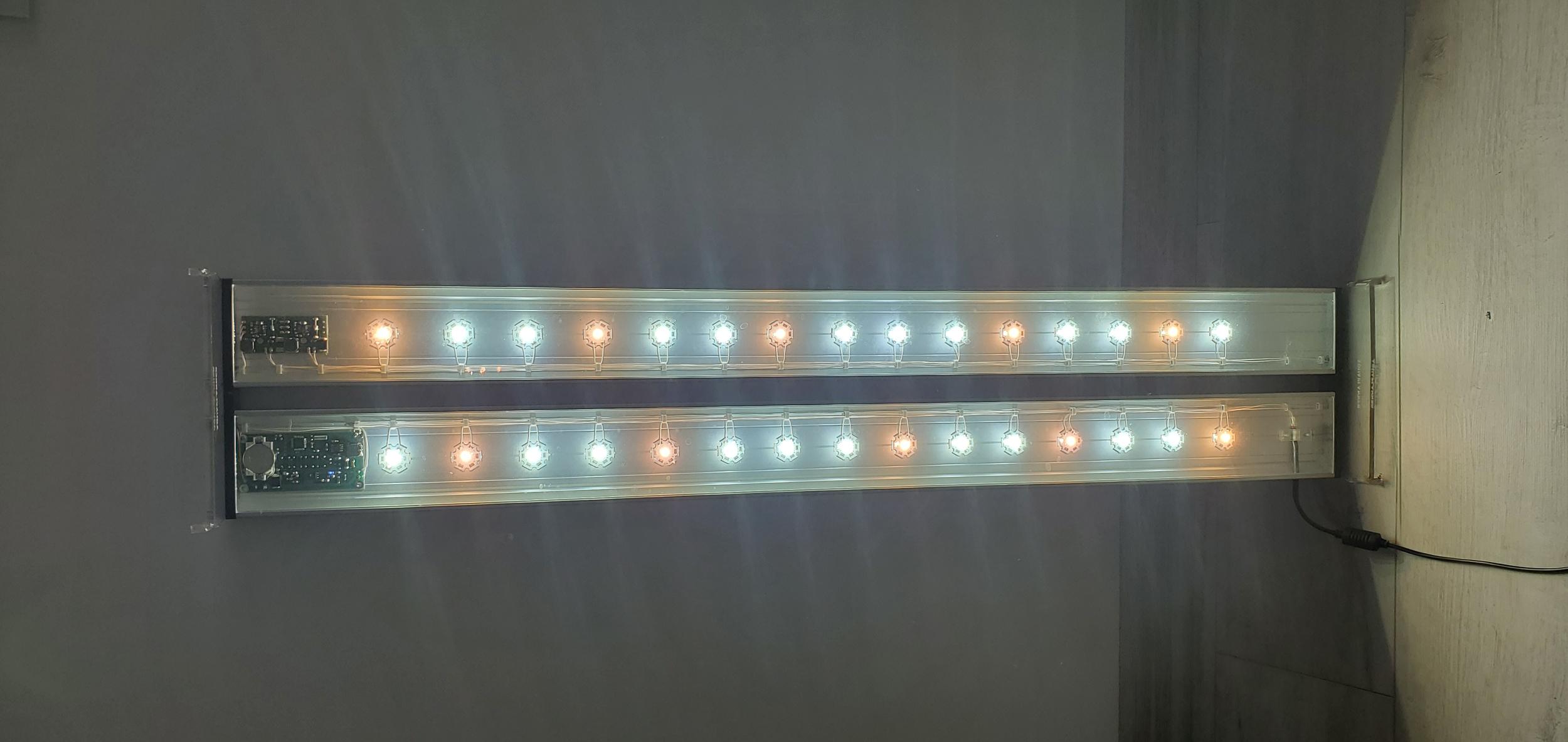 3.Led освещение- светильник от компании*AquaPlanner*(думаю в рекламе и описании подробном не нуждается), 30 светодиодов Cree - 20белых и 10 желтых, приблизительно 9тыс люмен, делался для форсированного травника, контроллер AquaPlanner Mini, имеется регулировка яркости, рассвет и закат, лунная подсветка и т.д.