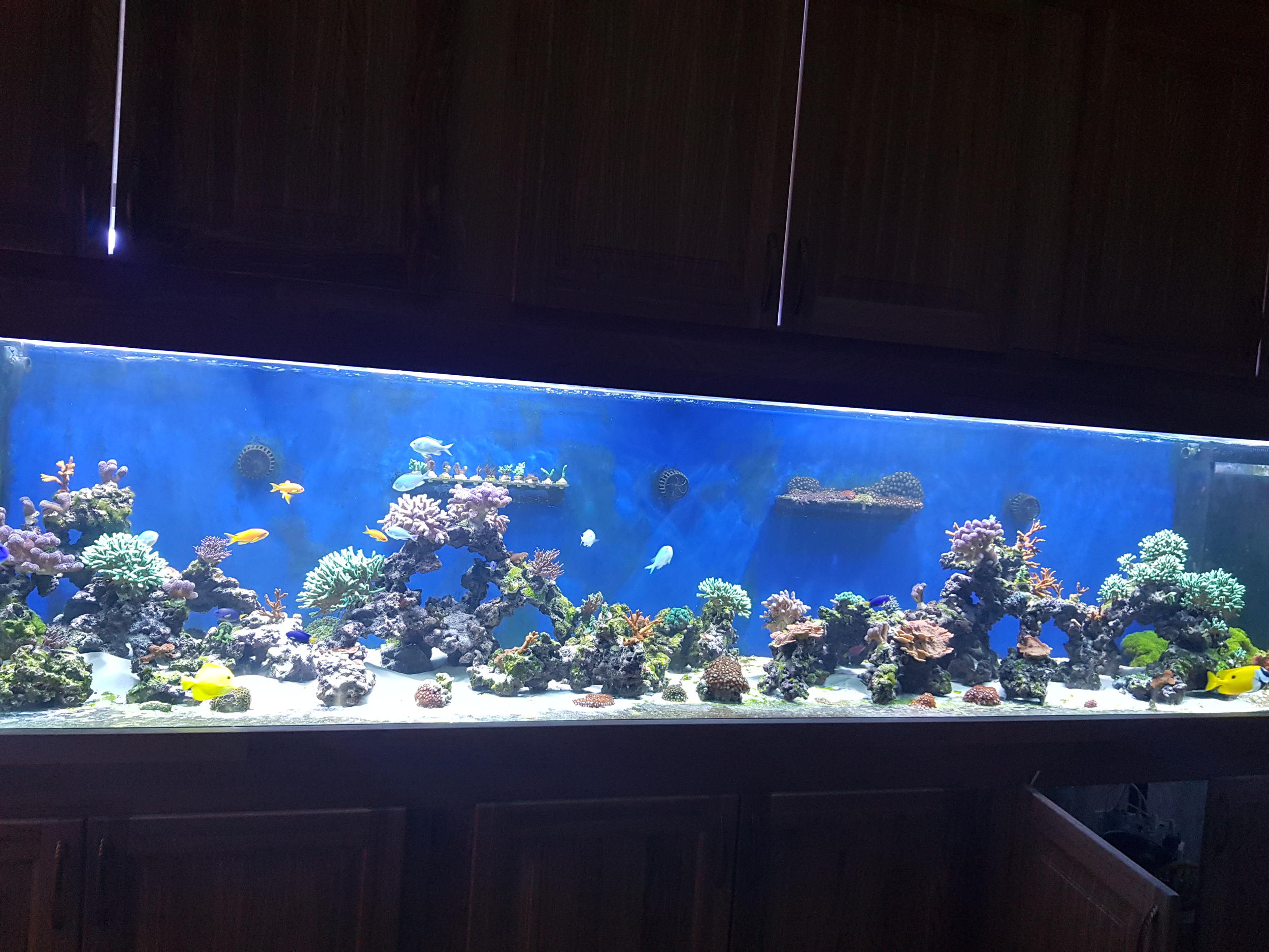 С морем мы вместе уже 7 лет, но только в етом году смог реализовать свою мечту - была создана панорама длинною в 4 метра! Запуск состоялся 15 августа 2020 года. Запускал и переселял все в спешке так как живность была перемещена во временный резервуар, что повлекло за собой очень обидные потери, но не будем о грустном.