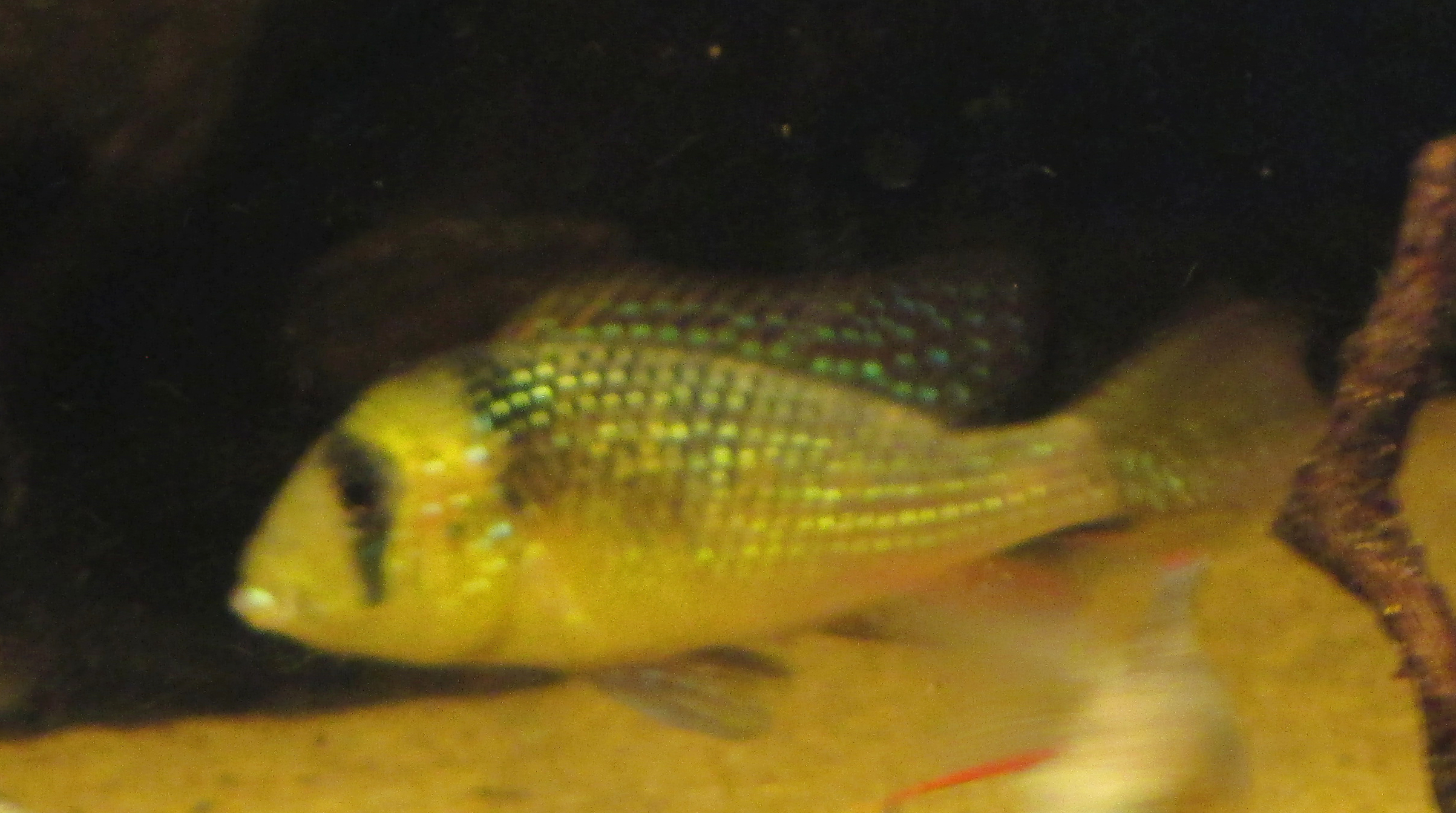 пора оживити тему, а то щось затихли всі. Ось таке чудо підростає у мене. Заявлений як Geophagus mekinos. Ще малі і далекі від дорослого забарвлення, але колір вже трохи починає "пробиватись". Якісь фото не дуже (постараюсь зробити кращі нехабаром), бо неможливо спіймати в кадр, шустрішого геофагуса ще не зустрічав