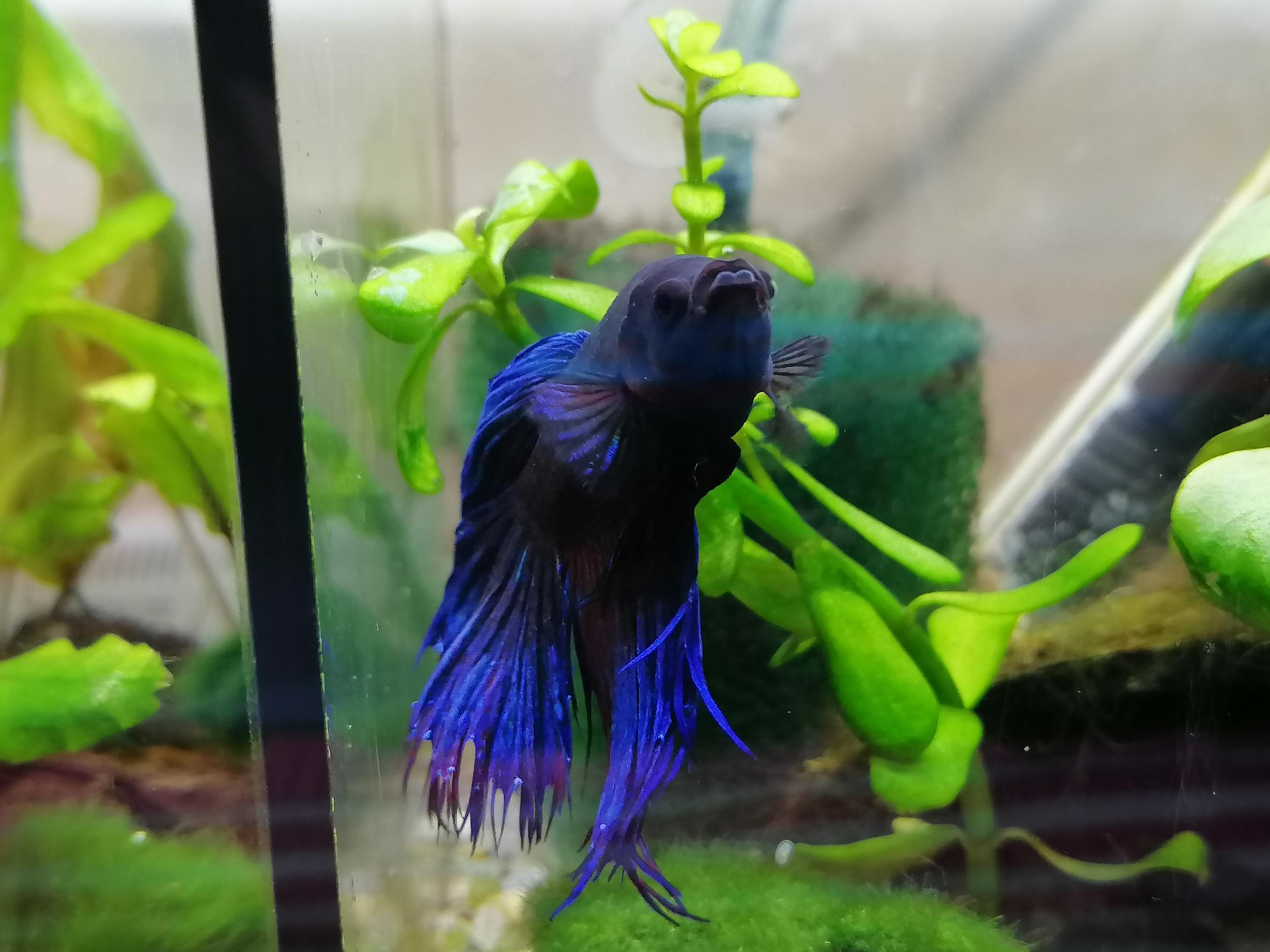 Что может быть с петушком? Про него долгая история, живёт в одном из аквариумов 5 литров, за стеклянной стеной жила его подружка в таких же условиях как он. Про тесты на воду: никогда не было и не нужно было, и сделать сейчас не получится, подмены 25-35% еженедельно были питьевой водой всем рыбам одинаково, вода никогда не казалось грязной и не вредила рыбам и они ведут себя активно по-петушиному, у красного петушка такие же условия и он не подхватил инфекцию. У этого же петушка давно уже что-то с глазами, они немного выпученые но равномерно и с белой обводкой. В один момент когда не давно плавно повысилась температура до 26° (до этого жили в очень маленькой, 18-20°) петушок сильнее заболел, стал вялым, у него появился белый налёт на рту и ещё какой-то на плавниках (фото плавников), жабры будто воспалились. Тогда я добавляла левомицетин (1/6 таблетки на аквариум и каждые два дня подмена почти 50% и 1/12 таблетки), ему стало лучше и через день налёт с плавников убрался и поражённые плавники опали и начали отрастать, так же глаза стали менее выпучеными и налёт на губах почти убрался. Потом я сменила антибиотик на ципрофлоксацин и на сегодня до сих пор с такими же подменами но большей дозой петушок живёт. Выходит почти 2 месяца лечится (потому что ему помог чем-то антибиотик явно). Вопрос с здоровьем остался и глаза то выпученые, то нет. Интересно что это может быть за болезнь, симптомы: выпученые глаза, налёт на рту, петушок тревожно захватывает кислород с верху будто не может его удержать и иногда двигает жабрами от чего теряет набранные пузырьки и снова наберает и идёт доставать самку. Не от чего не отказывается и активный, не вялый. С блекаутом у них может сильно падать температура, накрываю их тогда)) мне ещё очень повезло потому что в магазине все все рыбки от блекаута умерли. Выпученые глаза у пипишка ещё в начале войны начала видится но не хотела залечить. Может кто-то знает похожую бактериалку, симптомы, ситуацию, потому что она явно не от условий и появилась со временем и её нужно вылечить как-то. Мне предложили соль без йода, но есть сомнения. Фоточки есть. Кстати, петушок ни разу не плел гнездо, беспородный и не самого лучшего качества разводчика. Хочу помочь ему