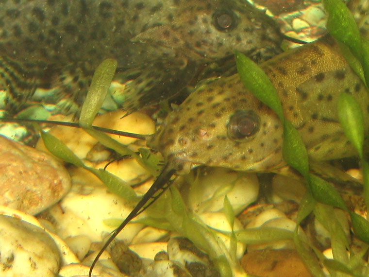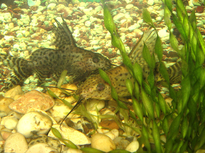 Вот два моих хищника (динозаврика). Тот который побольше - "Гоша", не так давно съел речного вьюна, причем вьюн был по размерам не меньше самого Гоши.