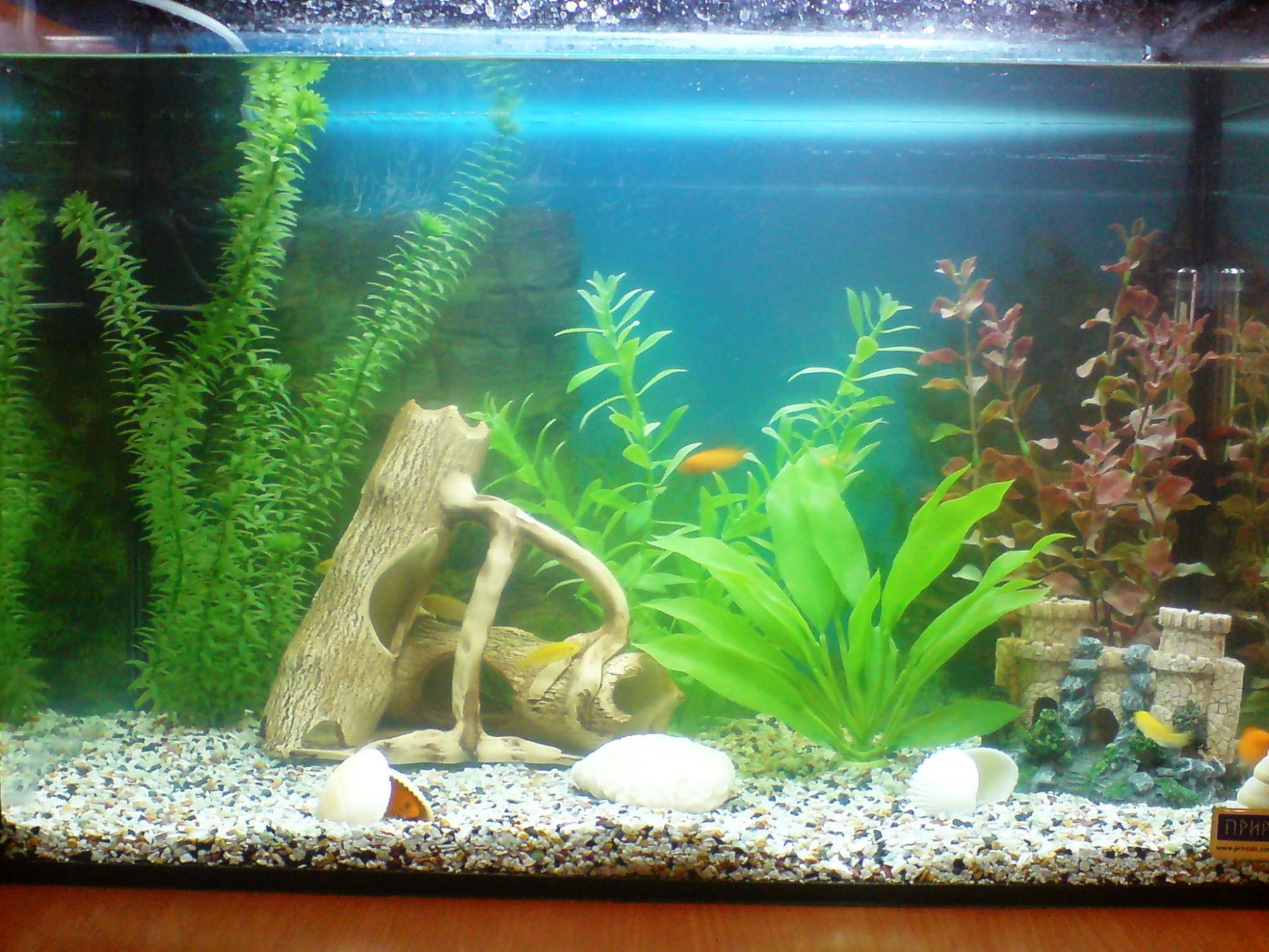 Температура в аквариуме 25, внутренний фильтр 250л/час. Водоросли пластмассовые, как я уже потом прочитал для цихлид они как раз то что надо, не жуются