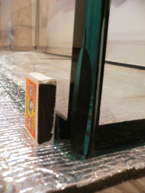 Клеили из 12-мм стекла. По всему периметру имеются ребра жесткости, одна широкая поперечная стяжка.