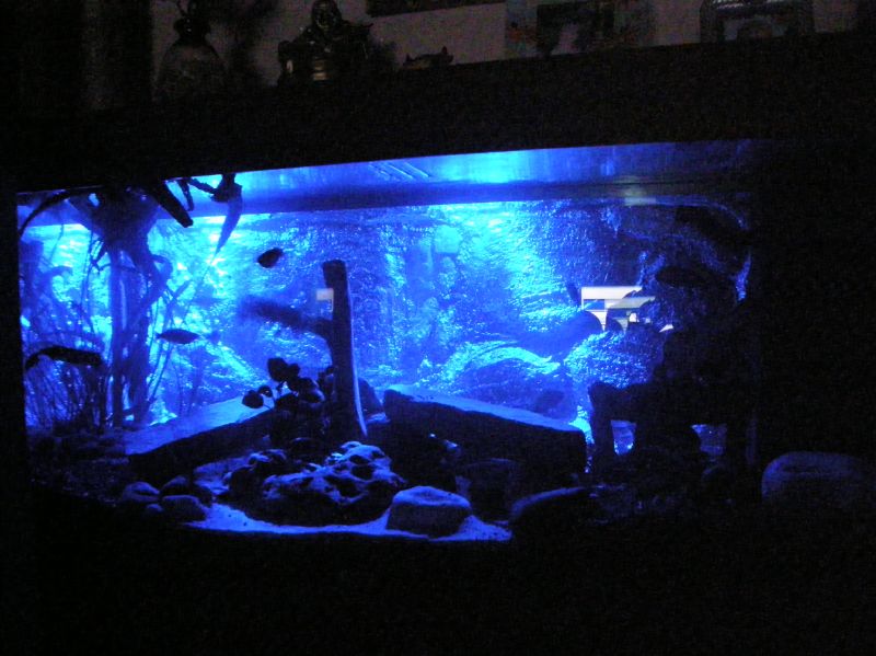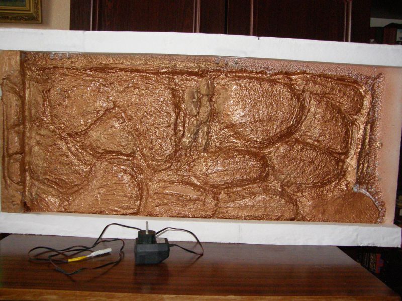 Вот тут я решил попробовать сделать внешний фон по технологиям описанным на форуме (пенопласт+цемент+краска). Но при этом захотелось совместить фон с "лунным светом" на светодиодах (тоже была тема форума).