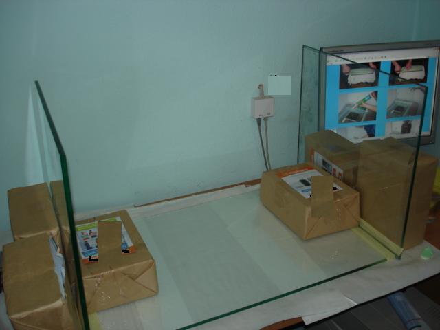 Вообщем начал клеить акву, пока что приклеил 2 боковых стенки! Завтра буду клеить фронтальную и заднюю стенку.