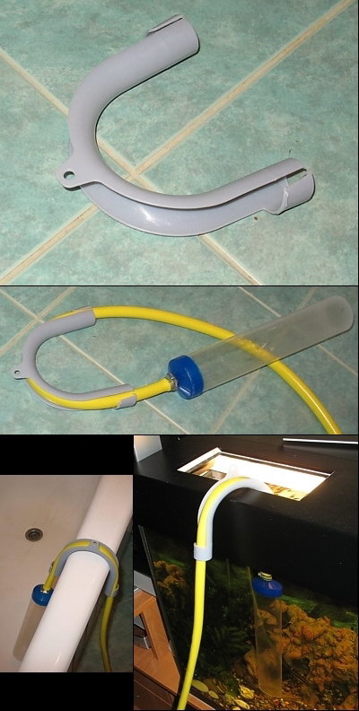 Или кусок пластика с двумя отверстиями и продеваем в них шланг буквой U