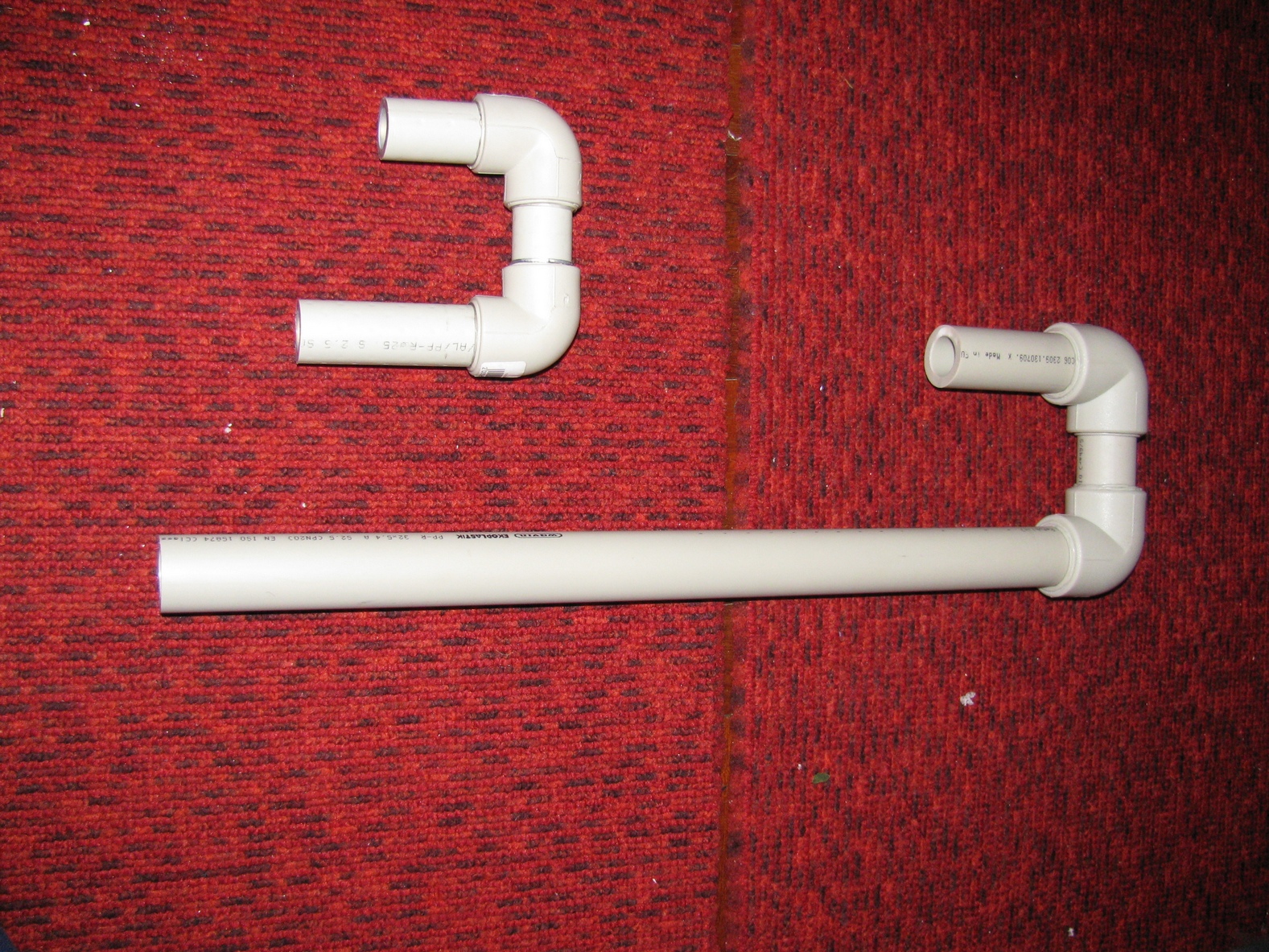 2.Патрубки-заборный, напорный, ввод в емкость фильтра-сделал из обрезков водопроводных пластиковых труб, оставшихся от домашнего ремонта.(спаял мне их товарищ, у которого есть паяльник).