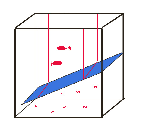 Верхняя кромка будет находится примерно посередине аквариума (банка 40x40x25h) и круто спускаться вниз. В отсеке для мальков будут рассажены растения и аэратор таким образом чтобы течение смывало мальков в свою половину а сверху они будут блокироваться марлей